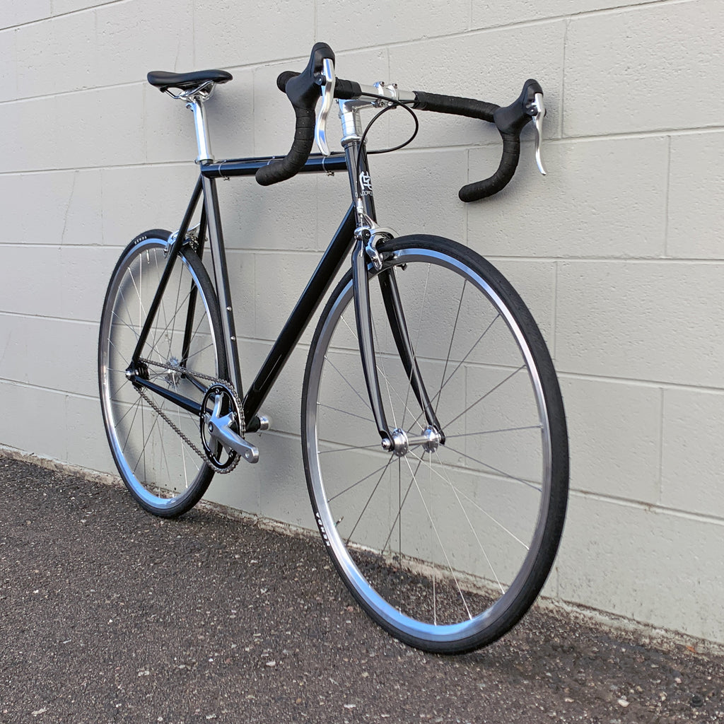 For those looking for one of the lightest one-gear rides out there, the Lightning delivers. It features a triple-butted Columbus Spirit frame, a sleek carbon fork, and our lightweight wheelset for a weight of about 18.5 pounds (55cm).